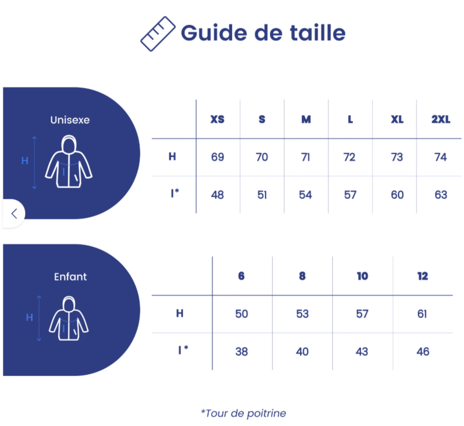 Tailles adulte : XS, S, M, L, XL, XXL, XXXL