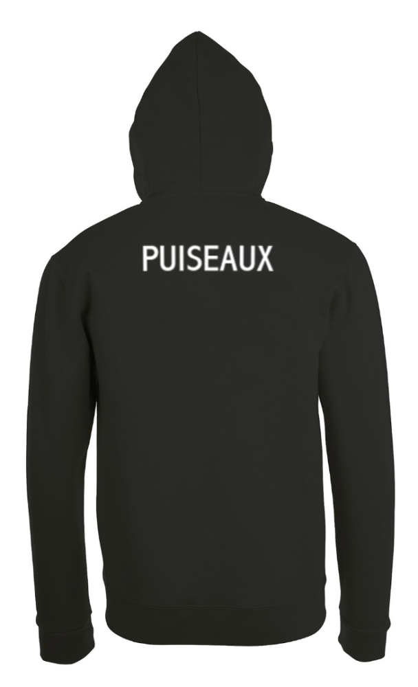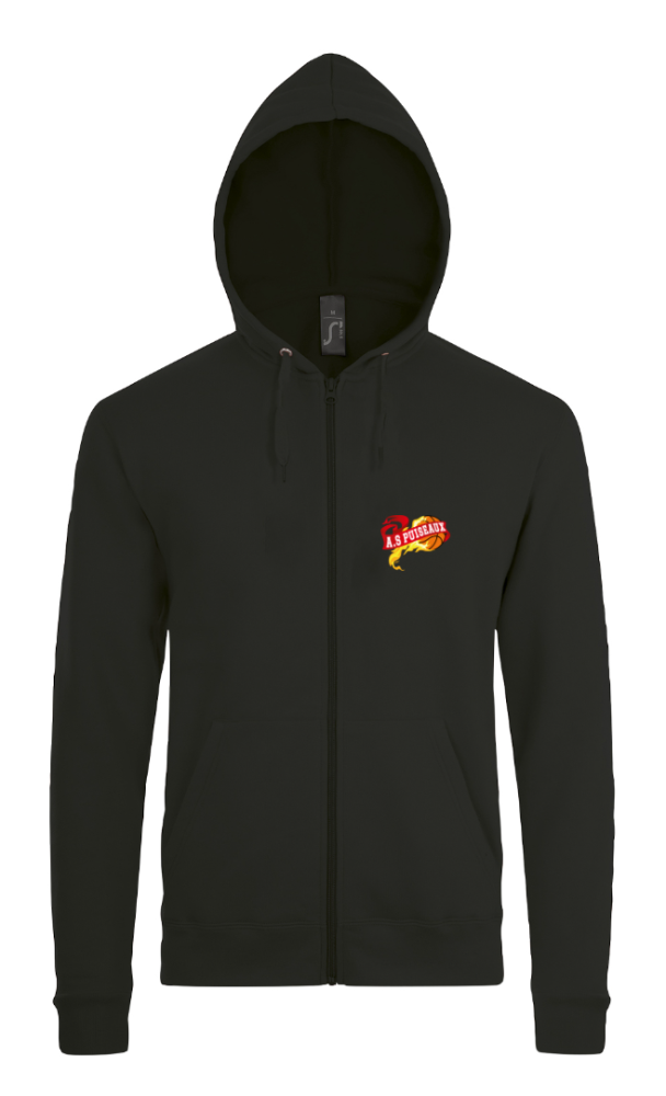 Veste zippée à capuche noire unisexe avec logo club sur le cœur + et prénom au dos - Modèle Saison 2025/2026