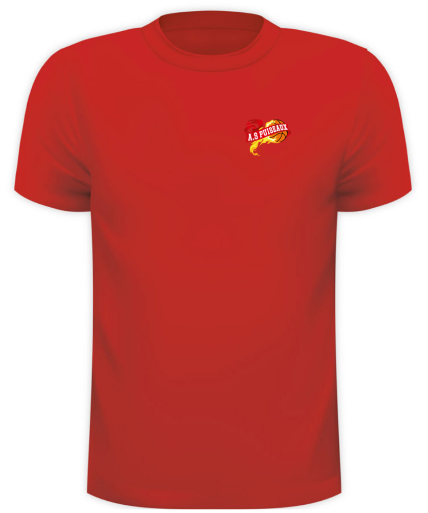 Tee-shirt rouge avec logo club sur le cœur + et prénom au dos - Modèle Saison 2025/2026
